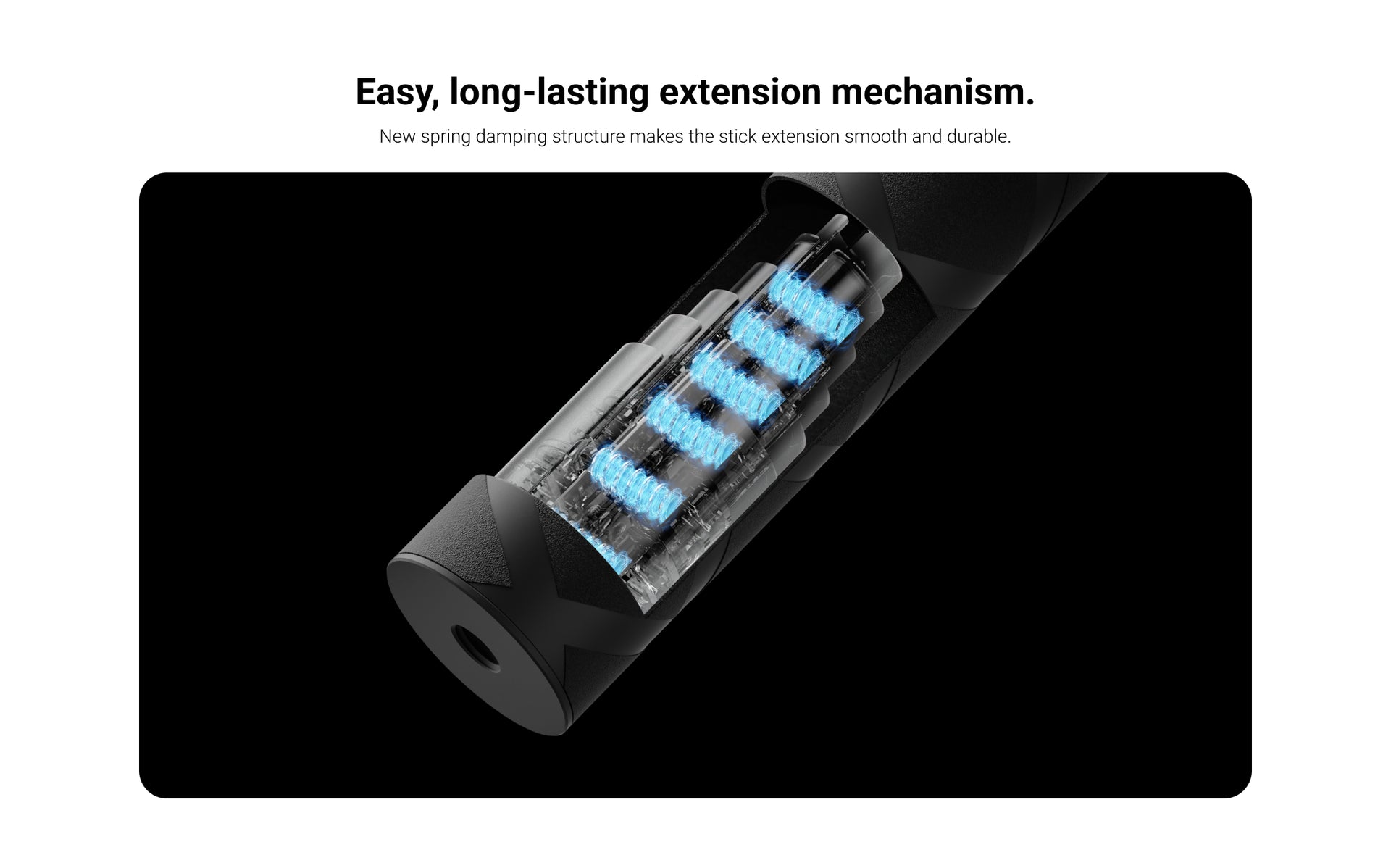 - For best stability, only extend the selfie stick to 2 sections (~70cm) with the ONE RS 1-Inch 360 Edition. When extending longer, please use discretion and assess the stability of the camera while shooting. Do not use long selfie sticks at high speeds or in action scenarios.