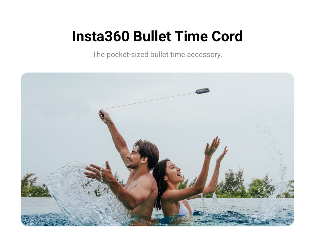 The Bullet Time Cord is a handheld retractable cord for swinging your camera in any direction. Cannot be used with the selfie stick.