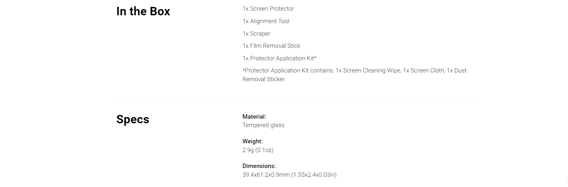 - Comes with a Protector Application Kit.